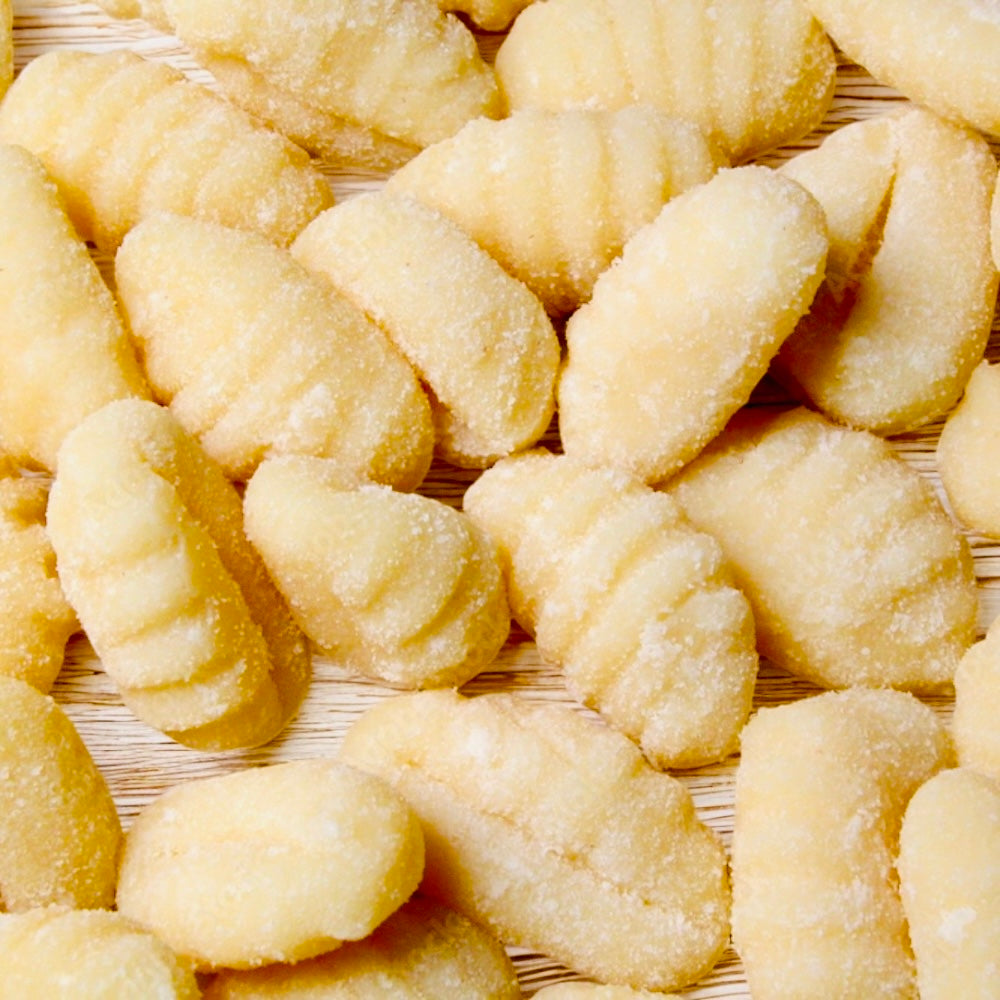 Soft, pillow-shaped dumplings. Gnocchi is versatile, tender, slightly chewy texture and is often used as a comforting and hearty dish.